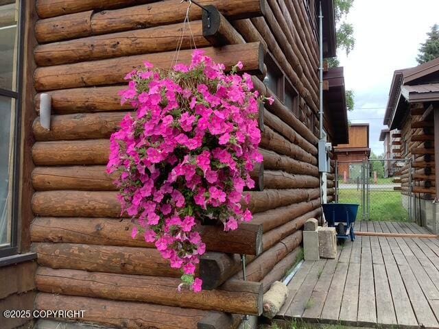 Hanging Basket Outside View Log Cabin 4614 Lake Spenard Rd Anchorage, AK